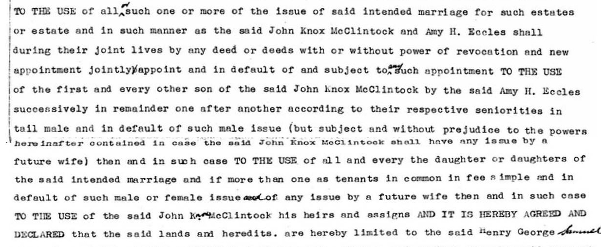 It has been suggested that Alexander McClintock of Drumcar bequeathed his Seskinore lands to his nephew; however, evidence indicates that he may have disposed of his holdings in County Tyrone prior to his death in 1775—or that his executors sold them thereafter.