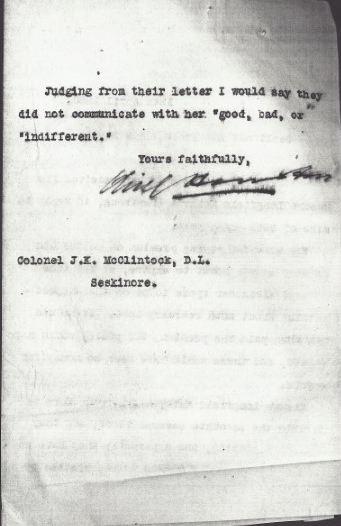 I wish to thank the Deputy Keeper of the Records, Public Record Office of Northern Ireland who has kindly granted permission allowing cuttings/extracts from albums D/568, D/1385/3 and D/1711/2 held at PRONI, to be reproduced on this site and especially thank you to all the staff at PRONI, for their assistance in researching the McClintock of Seskinore story.