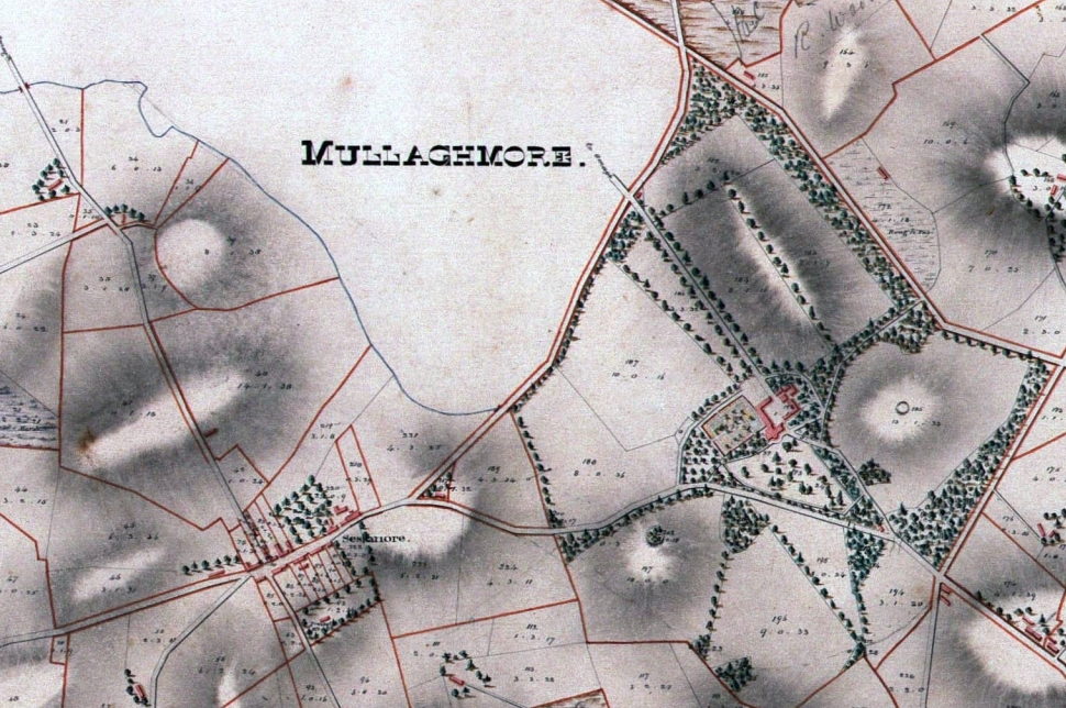 The ancient residence of this family, was at a place called Mullaghmore, (most likely the Irish name of the townland on which the old family house is situated) but denominated Perrymount, during their occupation of the place; and this with the beautiful village of Seskinore, erected by the Perry family, in the immediate neighbourhood of the lodge, are parts and parcels of the same property; but of the extent of this property, its natural history, or the names of the townlands composing it, beyond what has been just mentioned, we know nothing. Some who profess (what we do not) to have a deep and extensive acquaintance with the Irish language, maintain that Seskinore, or more properly Sheskinore, is a combination of two Irish words which (by a free translation) may be made to signify 'the rich or golden soil of thistles,' the thistle weed, when shooting up in large quantities being the sure indication of a rich and marrowy soil. Whether this be admissible as a free translation, or whether it diverges too far from the literal meaning of the parent root to come within the limits of a just literary licence, we presume not to say; but as the best that we could make out we give it, and let the reader who finds fault with our translation provide us with a better.