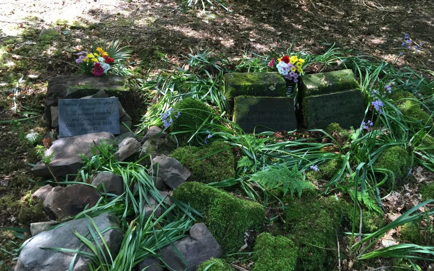 We climbed the old stone steps, and there, nestled in green, lay the moss-covered stones of the Garden of Remembrance. At the head of the low graves were two weathered markers—Tony and Leila Joynson-Wreford. They were simple, unpretentious, but dignified.