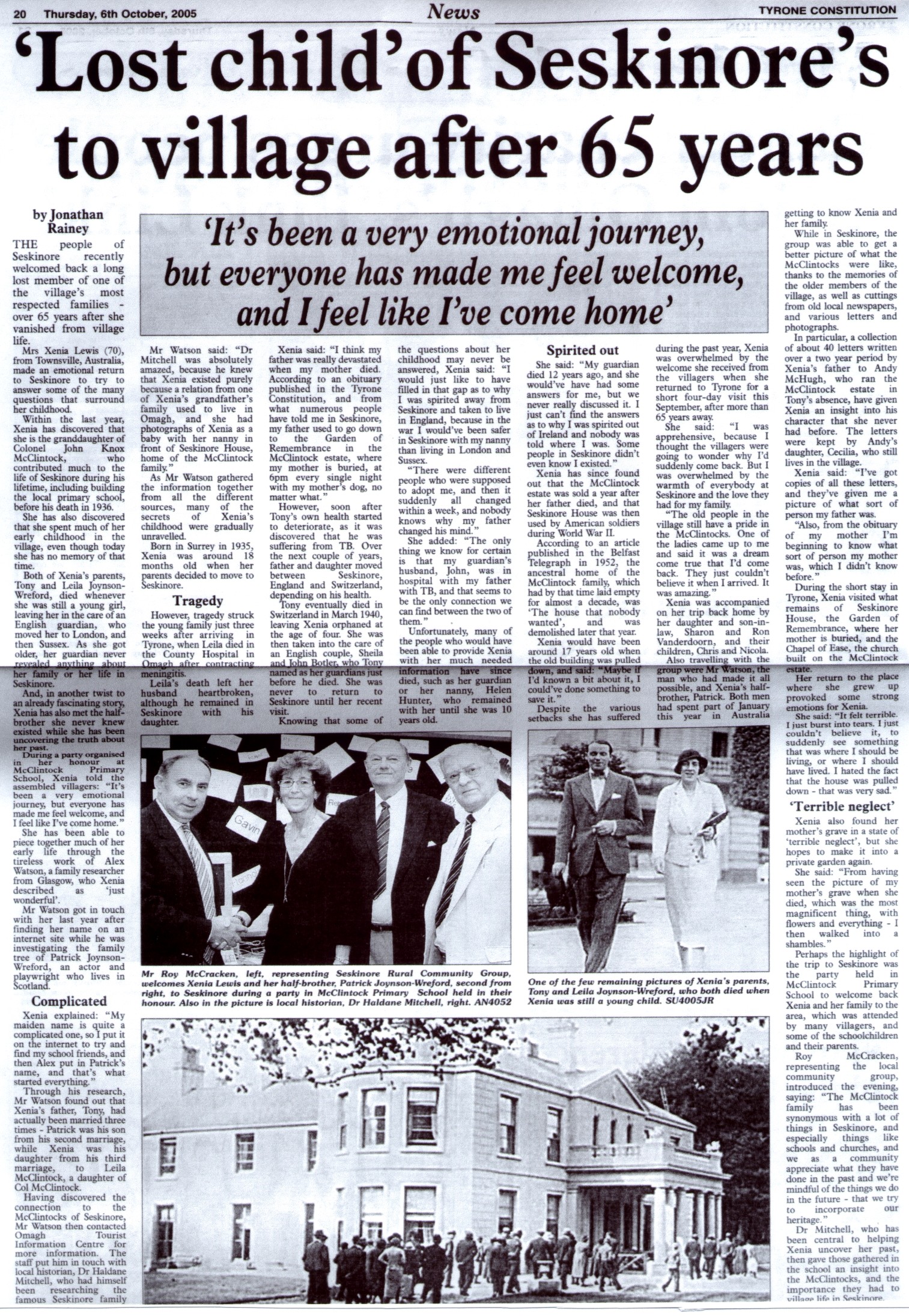 The Seskinore Community Group extended a heartfelt welcome to Xenia and her family with a reception held in the McClintock Primary School—a building of deep personal significance, having been established in 1900 by her grandfather. The atmosphere that evening was warm and celebratory, with villagers, friends, and distant connections gathering to acknowledge her return and rekindle ties to a lineage that had long been silent.